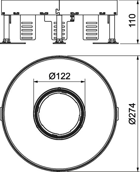 Charge verticale, grande surface jusqu'à 5 000 N Charge verticale, petite surface jusqu'à 3 000 N convient pour montage dans des faux-planchers oui Convient pour montage dans plancher technique oui Découplable non Diamètre de montage 275 Dimension Ø275mm Dimension nominale pour boîtier d'appareillages R7 Empreinte CO2 (GWP) du berceau à la porte 16,8327 kg CO2e / 1 Pièce Entretien du sol humide Épaisseur du revêtement de sol 25 mm Hauteur de plancher max. 155 mm Hauteur de plancher min. 110 mm Homologations NF Indice de protection (IP) en utilisation IP20 Indice de protection (IP) hors utilisation IP44 Indice de protection code IK IK10 Largeur 274 mm Longueur 274 mm Matériau acier inoxydable 1.4301 Modèle rond Modèle pour charges lourdes non Modèle Sortie de câble Tube escamotable Nombre d'appareillages montables 10 Nombre de paniers support appareillage 3 Nombre des sorties de câble 1 Plage de réglage max. 155 mm Plage de réglage min. 110 mm Profondeur de montage 110 mm Support d'appareillage pour le logement de paniers appareillage oui Type du système d'encastrement UT3 / UT4 - Tous les types