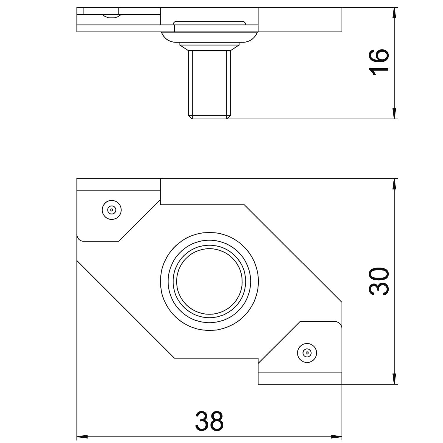 À charnière non Charge de rupture 0,22 kN Charnière ajustable non Couleur zinc Dimension M6x9mm Dimension H 16 mm Épaisseur de bride F max. 1,5 mm Épaisseur de bride F min. 1 mm Filetage M6x9 Filetage, métrique 6 Hauteur 16 mm Largeur 30 mm Longueur 38 mm Matériau Acier Surface Lamelle de zinc Type de fixation Bornes Type/élément de raccordement Filetage - Tous les types