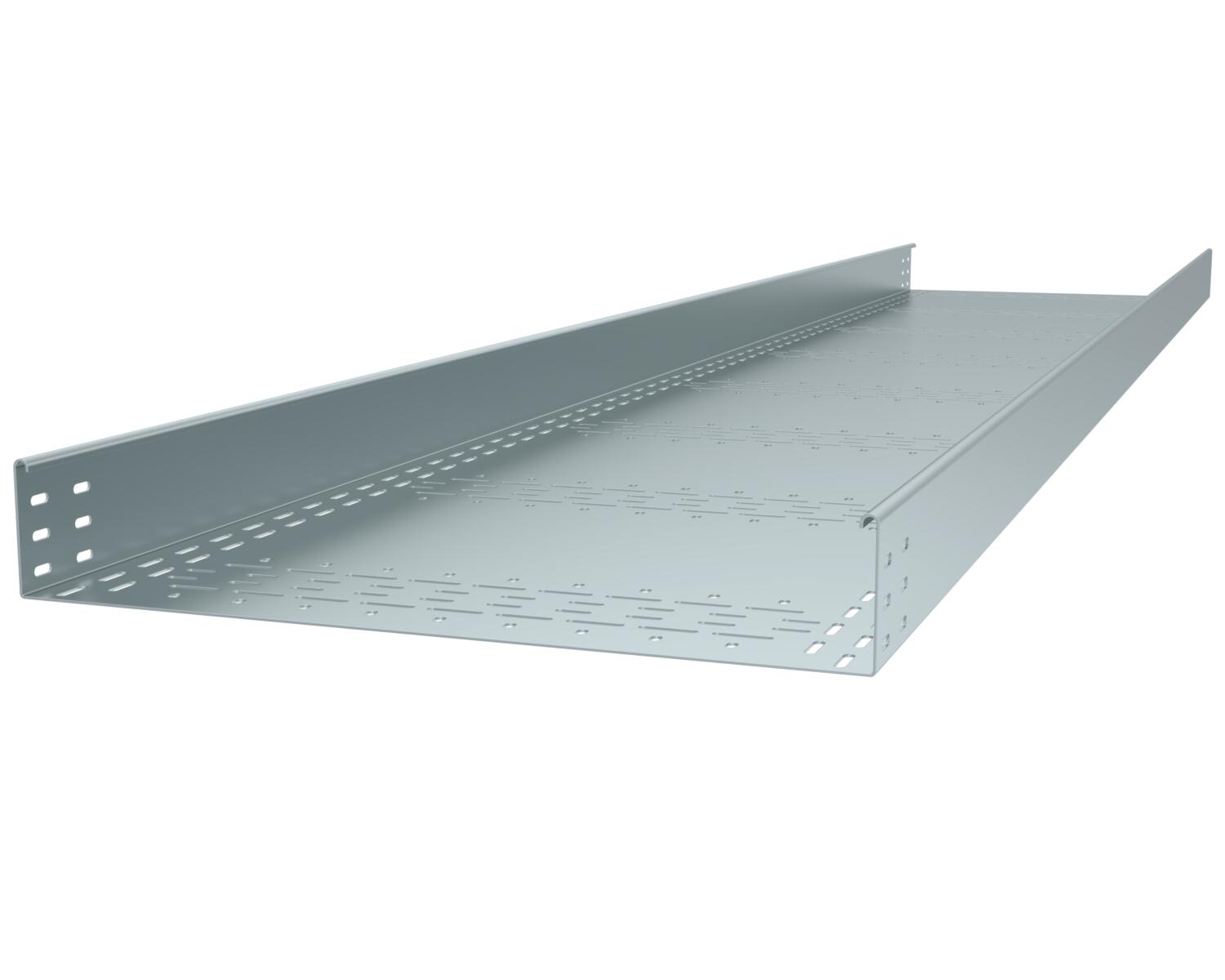 Description du produitSystème de chemins de câbles lourds et praticables BKRS à fond perforé, d'une hauteur d'aile de 100 mm.