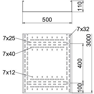Description du produitSystème de chemins de câbles lourds et praticables BKRS à fond perforé, d'une hauteur d'aile de 110 mm.