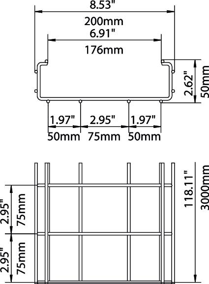 Description du produitChemin de câbles en treillis en C en fils d'acier soudés par points, avec hauteur d'aile de 50mm.
