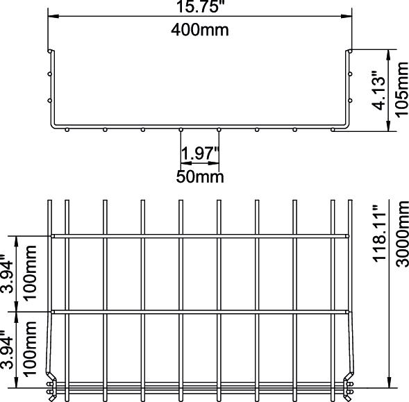 Description du produitChemin de câbles en treillis avec raccord préformé d'une hauteur d'aile de 105 mm.