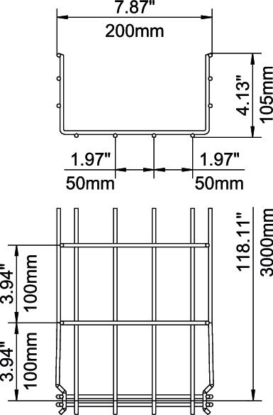 Aucune éclisse supplémentaire n'est nécessaire pour le chemin de câbles en treillis, il est simplement emboîté. Le maillage est de 50 x 100 mm.