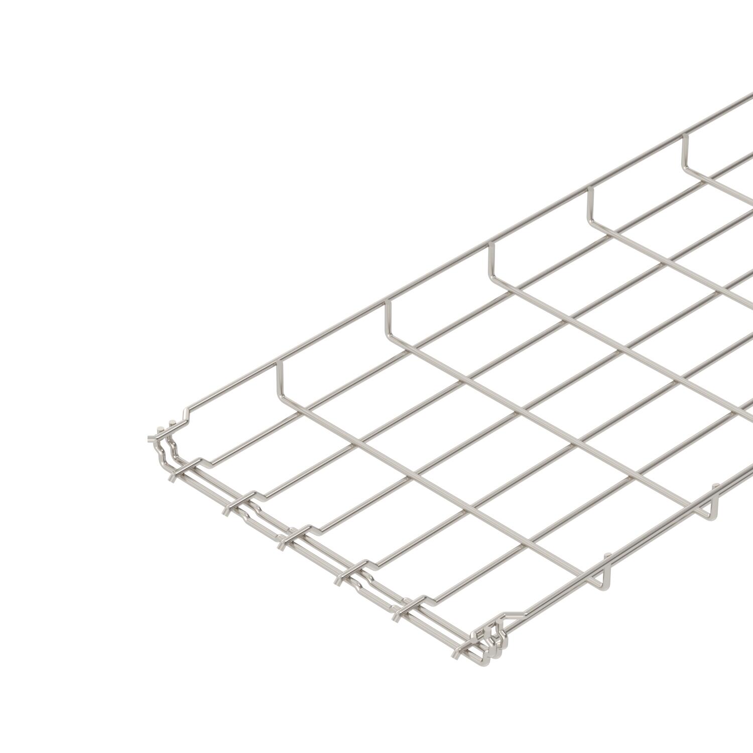 Aucune éclisse supplémentaire n'est nécessaire pour le chemin de câbles en treillis, il est simplement emboîté. Le maillage est de 50 x 100 mm (exception : GRM 35/50 = 20 x 100 mm).
