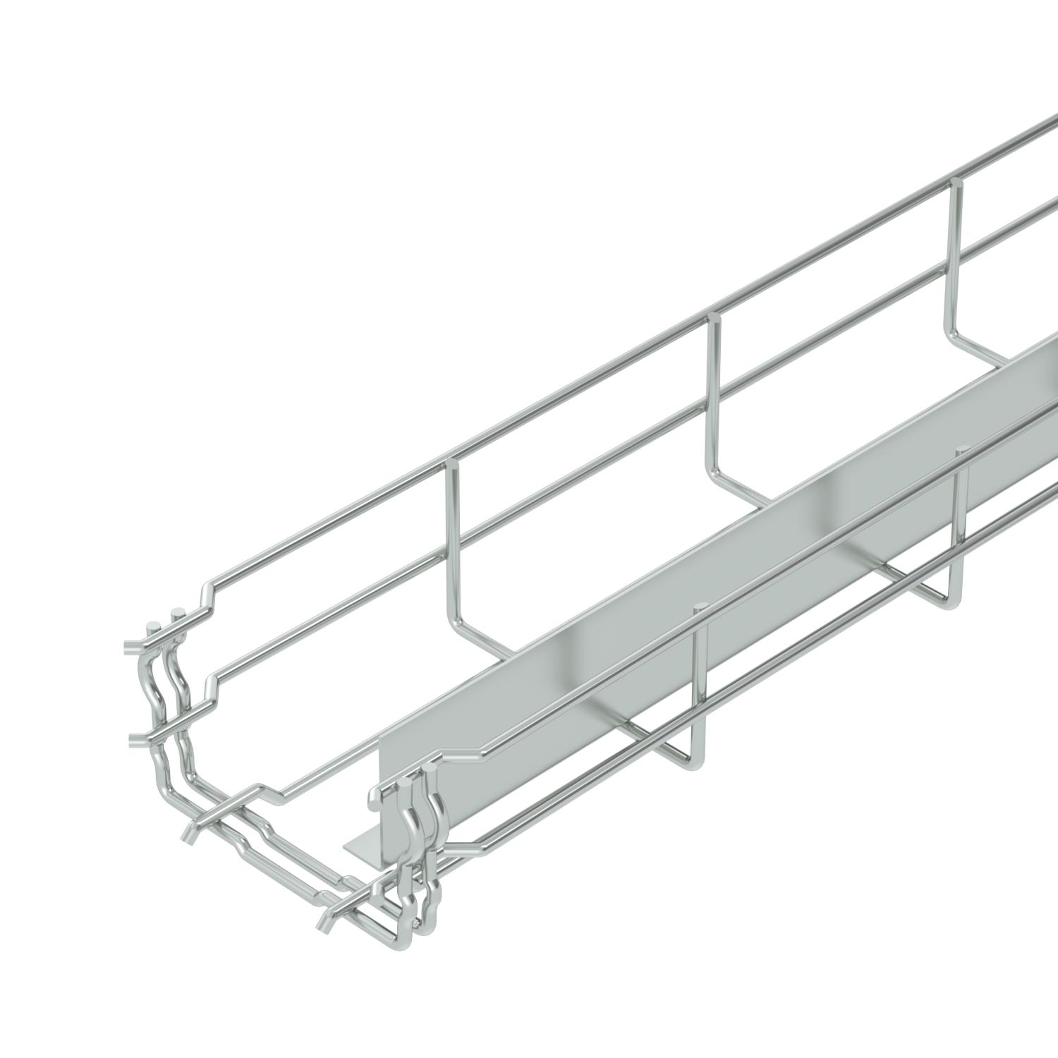 Description du produitChemin de câbles en treillis avec raccord préformé et séparateur soudé d'une hauteur d'aile de 55 mm.