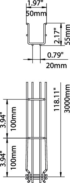 Aucune éclisse supplémentaire n'est nécessaire pour le chemin de câbles en treillis, il est simplement emboîté. Le maillage est de 50 x 100 mm (exception : GRM 55/50 = 20 x 100 mm).