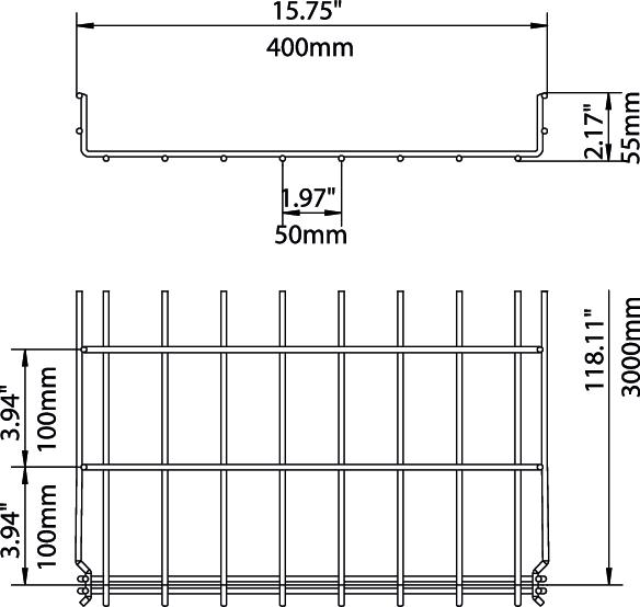 Aucun raccord supplémentaire n'est nécessaire pour le chemin de câbles en treillis, il est simplement emboîté. Le maillage est de 50 x 100 mm (exception : GRM 55/50 = 20 x 100 mm).