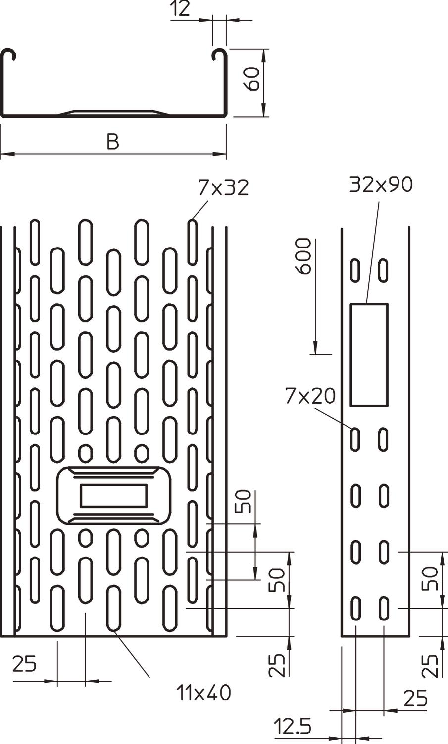 Acier inoxydable, teint non Avec couvercle non Cote B 100 mm Couleur zinc Dimension 60x100x3000 Dimensions 60 x 100 Distance entre supports 2,0m 0,7 kN/m Distance entre supports 1,0m 0,9 kN/m Distance entre supports 1,5m 0,9 kN/m Distance entre supports 2,5m 0,45 kN/m Empreinte CO2 (GWP) du berceau à la porte 4,3254 kg CO2e / 1 Mètre Épaisseur de tôle 0,04 in Épaisseur de tôle 1 mm Hauteur 2 in Hauteur 60 mm Insert installation de sprinkler oui Largeur 4 in Largeur 100 mm Longueur 3000 mm Longueur 10 ft Maintien en fonction non Matériau Acier Modèle longue portée non Perforation de montage dans le fond oui Perforation latérale oui Schéma de perçage NATO non Section utile 58 cm² Section utile 5800 mm² Surface galvanisé par bande Type de raccord du système de chemin de câble vissé Type de test de charge selon CEI 61537 Type II Version du connecteur sans raccord Caractéristiques techniques