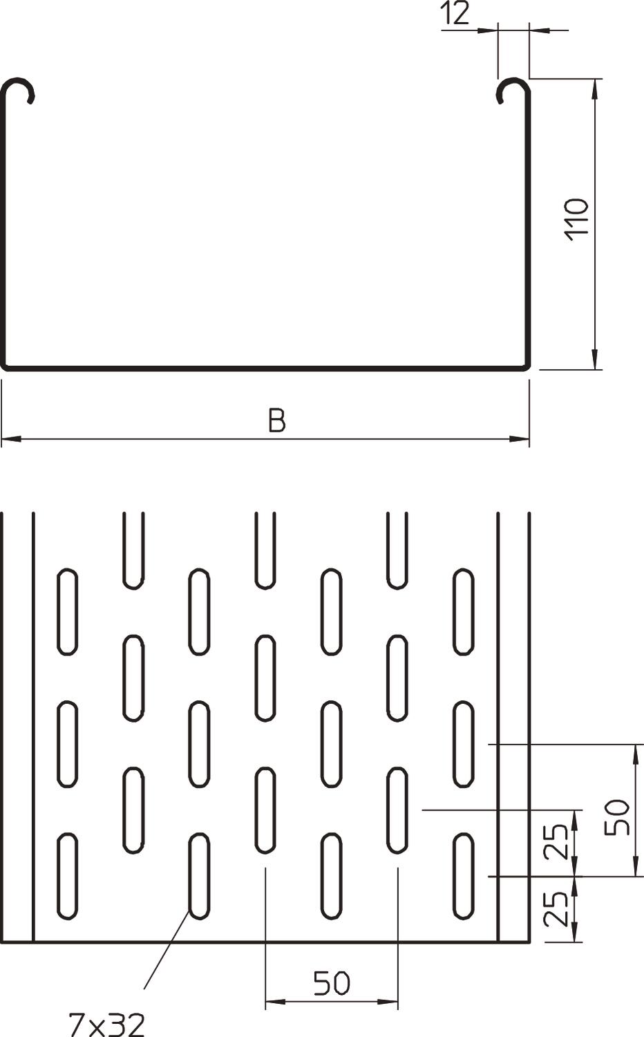 Description du produitSKS 110 = système de chemins de câbles lourd, d'une hauteur d'aile de 110 mm.