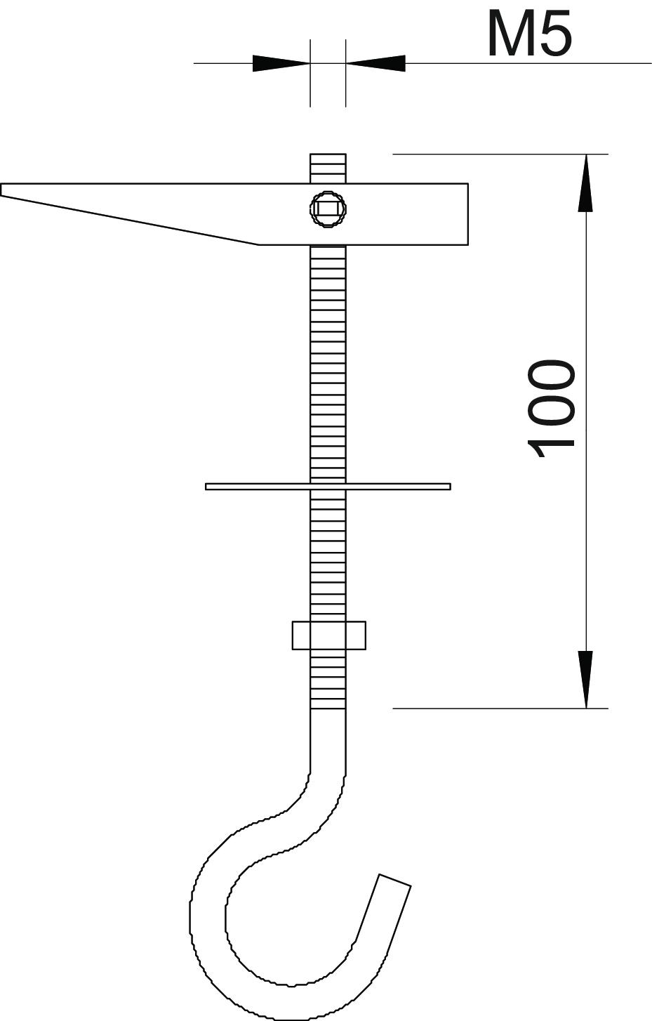 Avec rondelle oui Charge de rupture 0,4 kN Cote L 100 mm Diamètre de crochet 16 mm Diamètre de perçage min. 13 mm Dimension M5x100mm Empreinte CO2 (GWP) du berceau à la porte 0,0927 kg CO2e / 1 Pièce Filetage M5 Longueur 100 mm Matériau Acier Modèle avec crochet de plafond Surface galvanisé Trou de perçage 13 mm Type de filetage métrique - Tous les types