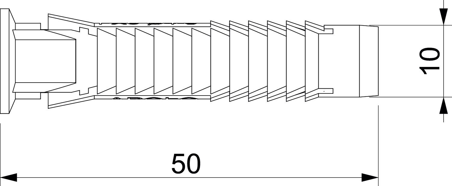 Avec vis non Convient pour fixation avec des colliers pour câbles non Convient pour vis à bois à tête hexagonale oui Cote D 10 mm Cote L 50 mm Couleur gris clair Diamètre 10 mm Diamètre de perçage min. 10 mm Dimension 10x50 Longueur 50 mm Matériau Polyéthylène Modèle Cheville universelle Valeurs d'extraction 1280 N Vis à bois 6-8 - Tous les types