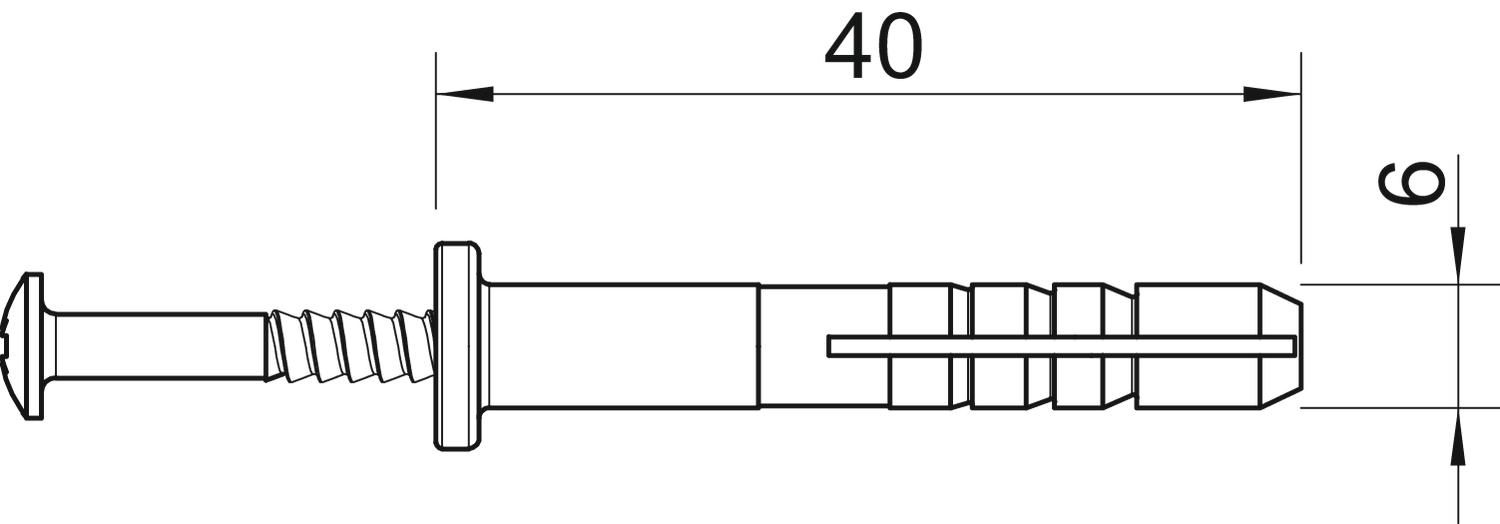 Avec vis oui Couleur gris clair Diamètre 6 mm Dimension 6x40mm Force d'arrachement 260 N Longueur 40 mm Matériau Polyamide Profondeur de perçage 50 mm Sans halogène oui Système à visser Pozidriv PZ - Tous les types