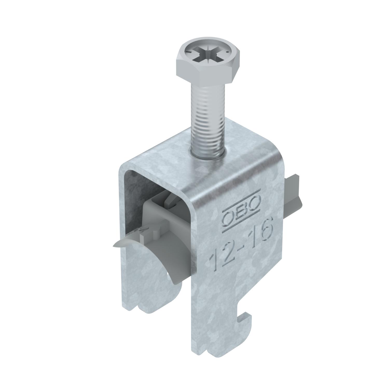 Description du produitClamp clip with N-foot, plastic pressure sleeve made of polypropylene. For vertical and horizontal mounting of 1 single cable on a C-profile rail. For slot width 11‒12 mm With 1-start screw thread on pressure sleeve, universal hexagonal screw head WAF10, with slot and cross recess. Suitable for assembly indoors and outdoors. We recommend the use of a counter-sleeve.