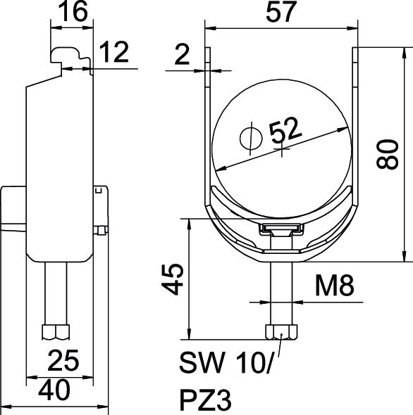 Avec contre-plaque Non Avec gouttière en plastique oui Cote A 25 mm Cote B 57 mm Cote C 40 mm Cote L 45 mm Cote t 2 mm Dimension 46-52mm Dimension G (mm) M8 Dimension H 80 mm Empreinte CO2 (GWP) du berceau à la porte 0,2183 kg CO2e / 1 Pièce Épaisseur de tôle 2 mm Filetage M8 Hauteur 80 mm Largeur 57 mm Longueur 25 mm Longueur dimensions extérieures 40 mm Matériau Acier Matériau de la plaque Plastique Max. Couple de serrage 5 Nm Nombre de câbles/tubes 1 Ouverture 10 mm Plage de serrage D max. 52 mm Plage de serrage D min. 46 mm pour diamètre de tube max. 52 mm pour diamètre de tube min. 46 mm Pour rail avec largeur de fente (avec intervalle) max. 12 mm Pour rail avec largeur de fente (avec intervalle) min. 11 mm Qualité du matériau de la plaque Polypropylène Sans halogène oui Supplément matériau Acier Supplément surface galvanisé à chaud Surface galvanisé à chaud par trempage Type de montage Rail profilé - Tous les types