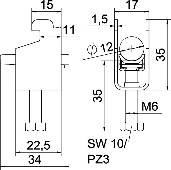 Description du produitClamp clip with N-foot, plastic pressure sleeve made of polypropylene. For vertical and horizontal mounting of 1 single cable on a C-profile rail. For slot width 11‒12 mm With 1-start screw thread on pressure sleeve, universal hexagonal screw head WAF10, with slot and cross recess. Suitable for assembly indoors and outdoors. We recommend the use of a counter-sleeve.