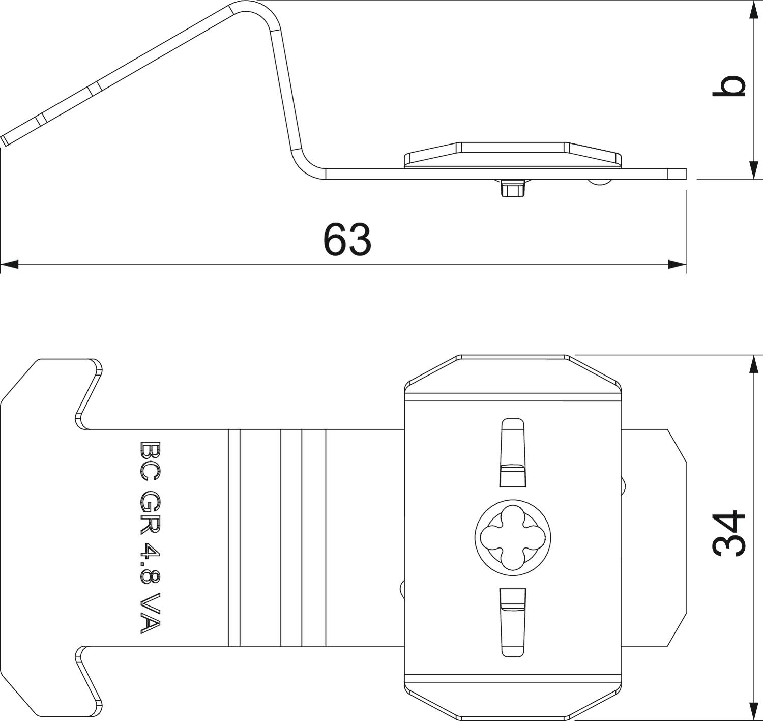 Description du produitClip de fixation pour montage sans vis de chemins de câbles en treillis sur rails profilés MS avec une largeur de fente de 22 mm.
