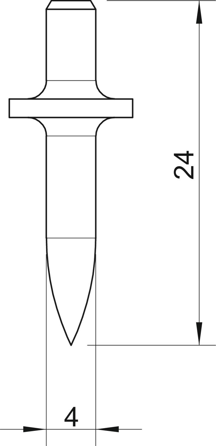Cote L 24 mm Diamètre de bride 10 mm Dimension L18mm Dimension d min. 4 mm Longueur 24 mm Longueur de tige 18 Matériau Acier trempé oui - Tous les types