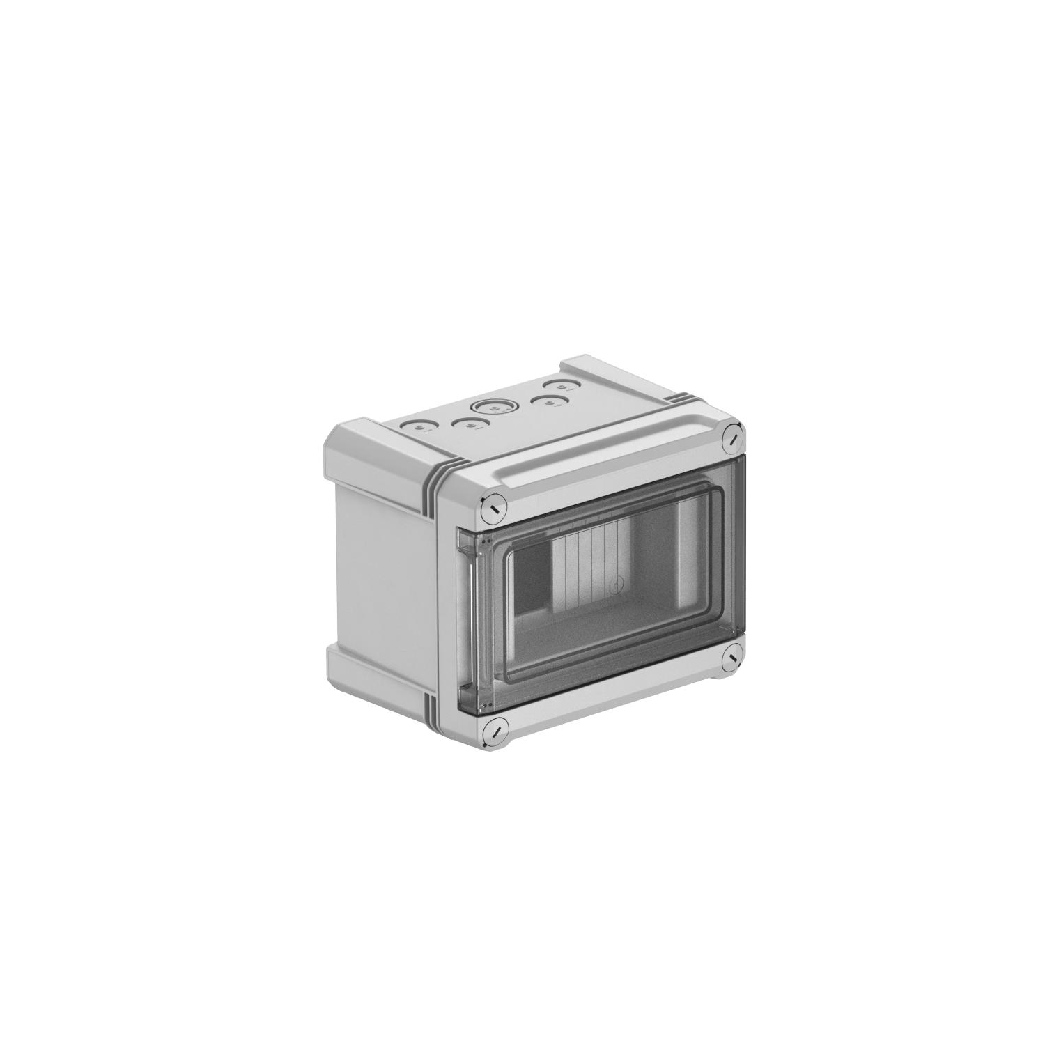 Trois variantes d’équipement sont possibles: avec des bornes à vis, avec des bornes à fiche et sans bornes. Toutes les tailles et variantes d'équipement existent en deux matériaux. Tous les coffrets sont fournis avec un rail porteur 35mm DIN prémonté .