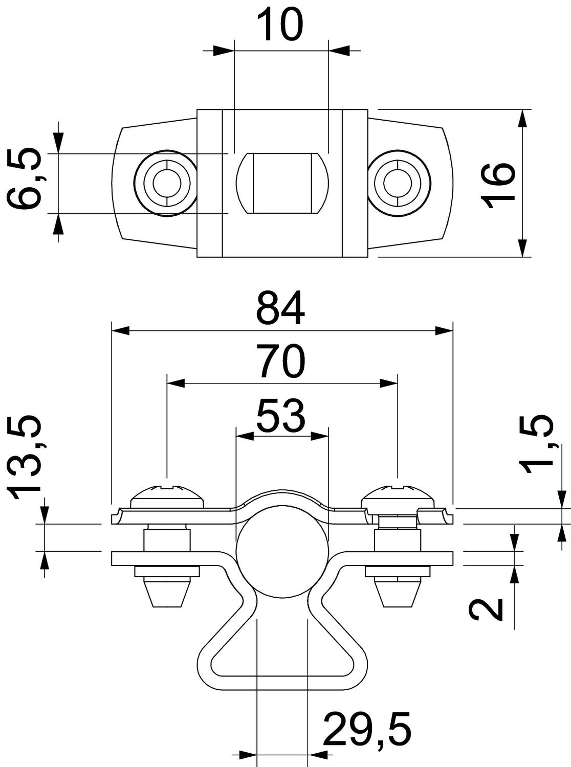 Avec gaine en matière plastique non Cote A 84 mm Cote b 16 mm Cote B 70 mm Cote D 53 mm Cote L 10 mm Cote s 29,5 mm Cote x 13,5 mm Dimension 44-53mm Dimension d max. 53 mm Dimension d min. 44 mm Dimension t1 (mm) 1,5 Dimension t2 (mm) 2 Distance au mur oui Empreinte CO2 (GWP) du berceau à la porte 0,1683 kg CO2e / 1 Pièce Épaisseur du matériau 1,5 mm Maintien en fonction oui Matériau Acier Modèle fermé Nombre de câbles/tubes 1 Plage de serrage D max. 53 mm Plage de serrage D min. 44 mm pour un diamètre de 44 - 53 Résistant aux UV oui Sans halogène oui Surface galvanisé Type de fixation Trou de vis - Tous les types
