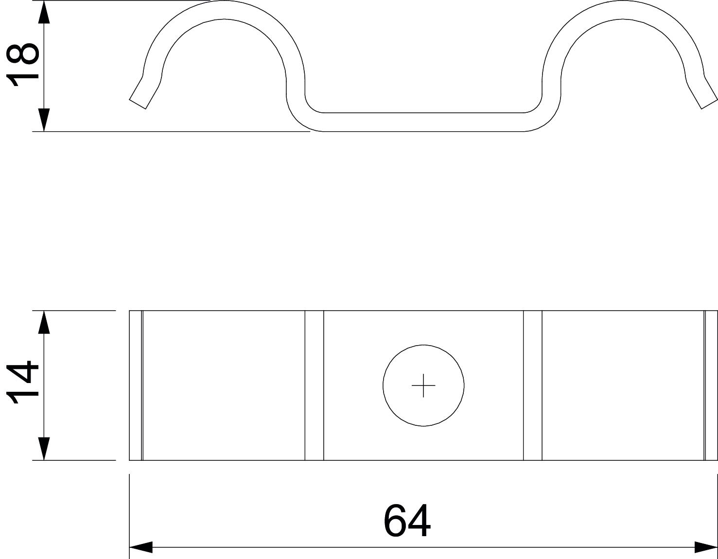 Avec gaine en matière plastique non Convient pour les espaces coupe-feu oui Cote A 64 mm Cote b 14 mm Diamètre nominal 18 mm Dimension 18mm Dimension du trou 6,5 mm Dimension H 18 mm Distance au mur non Empreinte CO2 (GWP) du berceau à la porte 0,0178 kg CO2e / 1 Pièce Épaisseur du matériau 1,5 mm Hauteur 18 mm Largeur 14 mm Longueur 64 mm Matériau Acier Modèle à une patte Nombre de câbles/tubes 2 Plage de serrage D min. 18 mm pour un diamètre de 18 Résistant aux UV oui Sans halogène oui Surface galvanisé Type de fixation Trou de vis - Tous les types