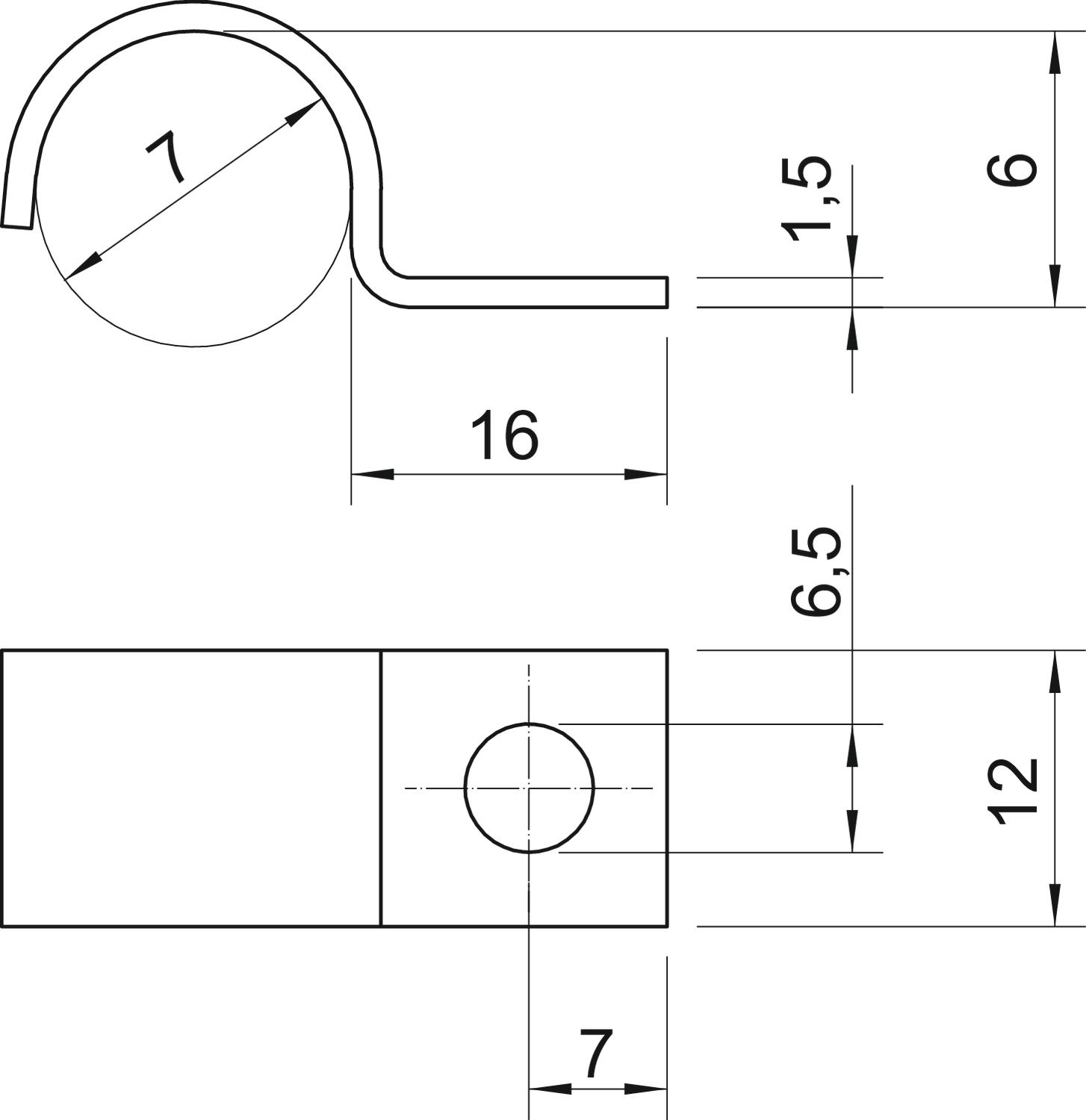 Avec gaine en matière plastique non Convient pour les espaces coupe-feu oui Cote A 7 mm Cote b 12 mm Cote D 7 mm Cote L 16 mm Diamètre nominal 7 mm Dimension 7mm Dimension du trou 6,5 mm Dimension H 6 mm Distance au mur non Empreinte CO2 (GWP) du berceau à la porte 0,0091 kg CO2e / 1 Pièce Épaisseur du matériau 1,5 mm Hauteur 6 mm Largeur 12 mm Longueur 16 mm Matériau Acier Modèle à une patte Nombre de câbles/tubes 1 pour un diamètre de 7 Résistant aux UV oui Sans halogène oui Surface galvanisé Type de fixation Trou de vis - Tous les types
