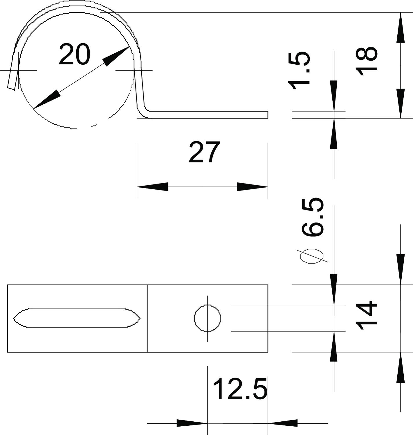 Avec gaine en matière plastique non Convient pour les espaces coupe-feu non Cote D 20 mm Diamètre nominal 20 mm Dimension 20mm Dimension du trou 6,5 mm Dimension H 18 mm Distance au mur non Empreinte CO2 (GWP) du berceau à la porte 0,018 kg CO2e / 1 Pièce Épaisseur du matériau 1,5 mm Matériau Acier Modèle à une patte Nombre de câbles/tubes 1 pour un diamètre de 20 Résistant aux UV oui Sans halogène oui Surface galvanisé Type de fixation Trou de vis - Tous les types