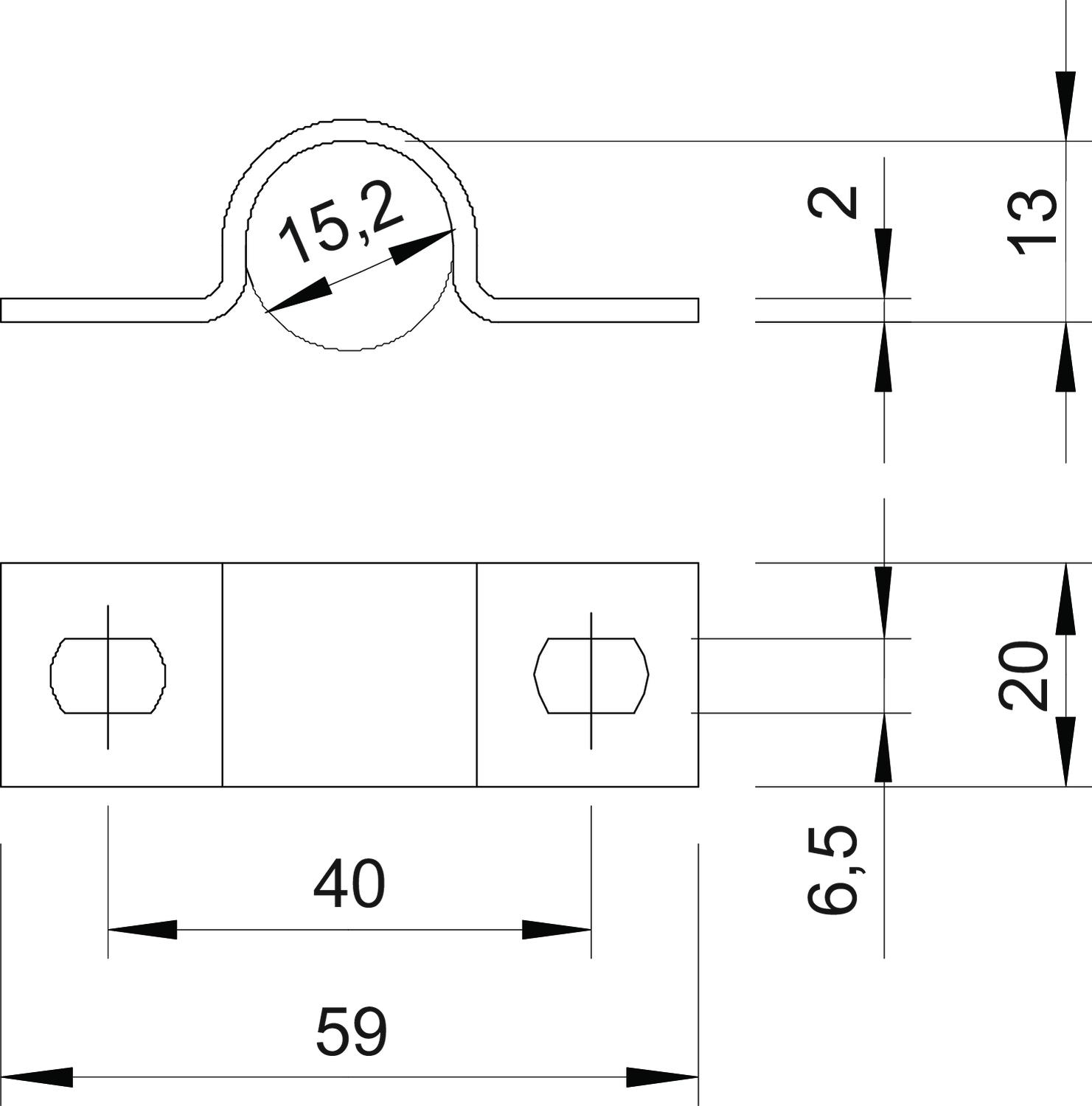 Avec gaine en matière plastique non Convient pour les espaces coupe-feu non Cote A 59 mm Cote B 40 mm Cote b 20 mm Cote D 15,2 mm Cote d 6,5 mm Cote t 2 mm Diamètre nominal 16 mm Dimension 16mm Dimension du trou 6,5 x 10 mm Dimension e 10 mm Dimension H 13 mm Distance au mur non Empreinte CO2 (GWP) du berceau à la porte 0,0525 kg CO2e / 1 Pièce Épaisseur du matériau 2 mm Hauteur 13 mm Largeur 20 mm Longueur 59 mm Matériau Acier Modèle à deux pattes Nombre de câbles/tubes 1 pour un diamètre de 16 Résistant aux UV oui Sans halogène oui Surface galvanisé à chaud par trempage Type de fixation Trou de vis - Tous les types