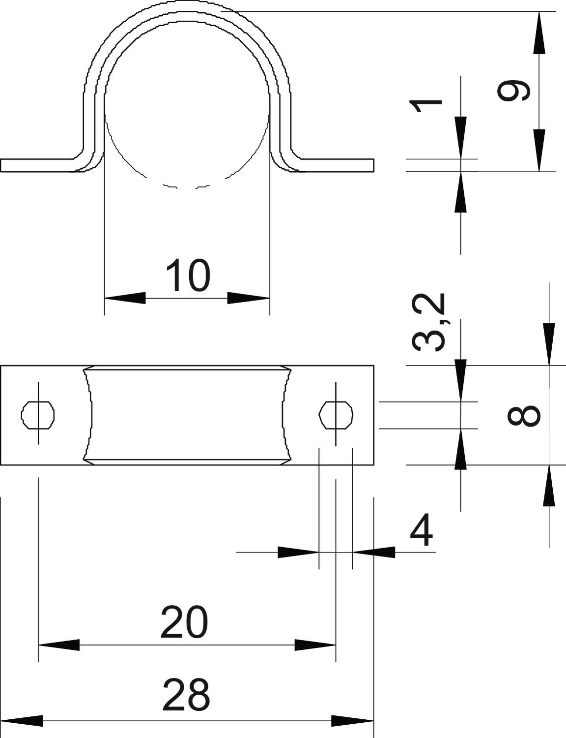 Avec gaine en matière plastique non Convient pour les espaces coupe-feu non Cote A 28 mm Cote b 8 mm Cote B 20 mm Cote D 10 mm Cote d 3,2 mm Cote L 28 mm Cote t 1 mm Diamètre nominal 10 mm Dimension 10mm Dimension du trou 3,2 x 4 mm Dimension e 4 mm Dimension H 9 mm Distance au mur non Empreinte CO2 (GWP) du berceau à la porte 0,0054 kg CO2e / 1 Pièce Épaisseur du matériau 1,5 mm Hauteur 9 mm Largeur 8 mm Longueur 28 mm Matériau Acier Modèle à deux pattes Nombre de câbles/tubes 1 pour un diamètre de 10 Résistant aux UV oui Sans halogène oui Surface galvanisé, passivé transparent Type de fixation Trou de vis - Tous les types