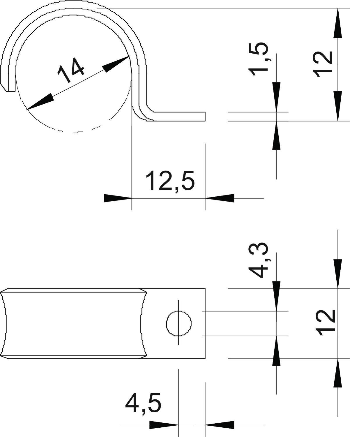 Avec gaine en matière plastique non Convient pour les espaces coupe-feu non Cote A 4,5 mm Cote b 12 mm Cote D 14 mm Cote d 4,3 mm Cote L 12,5 mm Cote t 1,5 mm Diamètre nominal 14 mm Dimension 14mm Dimension du trou 4,3 mm Dimension H 12 mm Distance au mur non Empreinte CO2 (GWP) du berceau à la porte 0,012 kg CO2e / 1 Pièce Épaisseur du matériau 1,5 mm Hauteur 12 mm Largeur 12 mm Longueur 12,5 mm Matériau Acier Modèle à une patte Nombre de câbles/tubes 1 pour un diamètre de 14 Résistant aux UV oui Sans halogène oui Surface galvanisé, passivé transparent Type de fixation Trou de vis - Tous les types