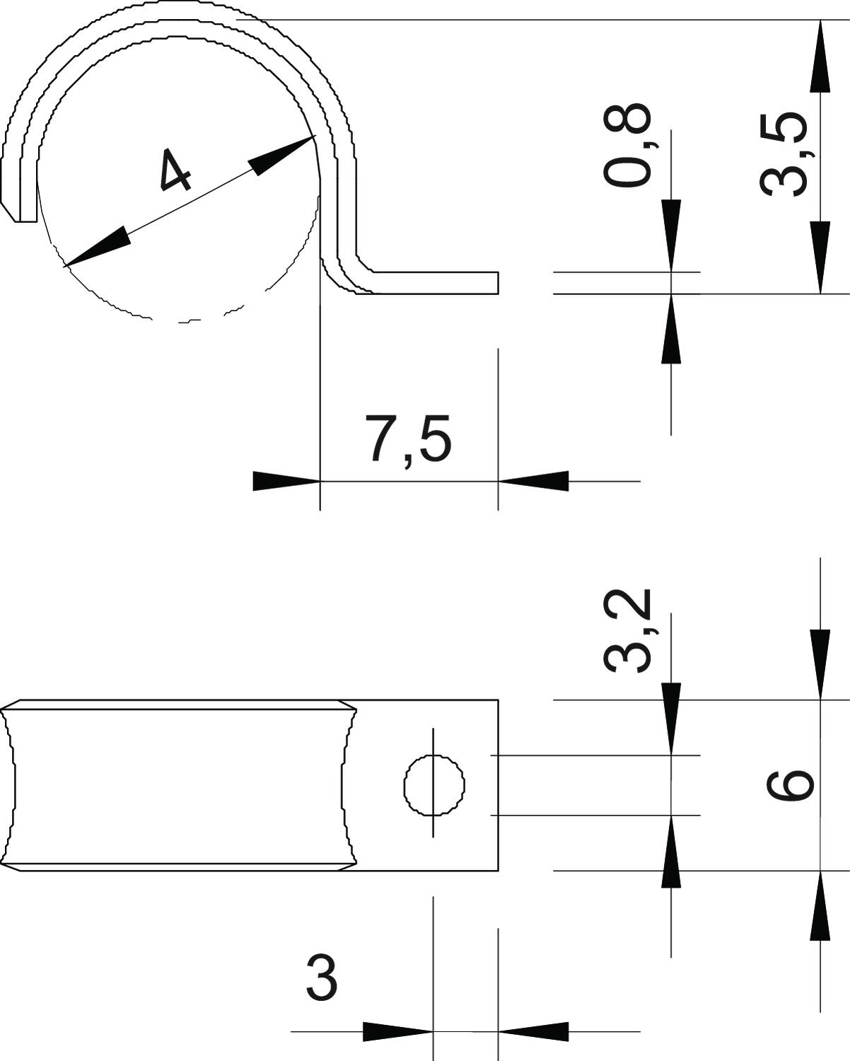 Avec gaine en matière plastique non Convient pour les espaces coupe-feu non Cote A 3 mm Cote b 6 mm Cote d 3,2 mm Cote D 4 mm Cote L 7,5 mm Cote t 0,8 mm Diamètre nominal 4 mm Dimension 4mm Dimension du trou 3,2 mm Dimension H 3,5 mm Distance au mur non Empreinte CO2 (GWP) du berceau à la porte 0,002 kg CO2e / 1 Pièce Épaisseur du matériau 1 mm Hauteur 3,5 mm Largeur 6 mm Longueur 7,5 mm Matériau Acier Modèle à une patte Nombre de câbles/tubes 1 pour un diamètre de 4 Résistant aux UV oui Sans halogène oui Surface galvanisé, passivé transparent Type de fixation Trou de vis - Tous les types