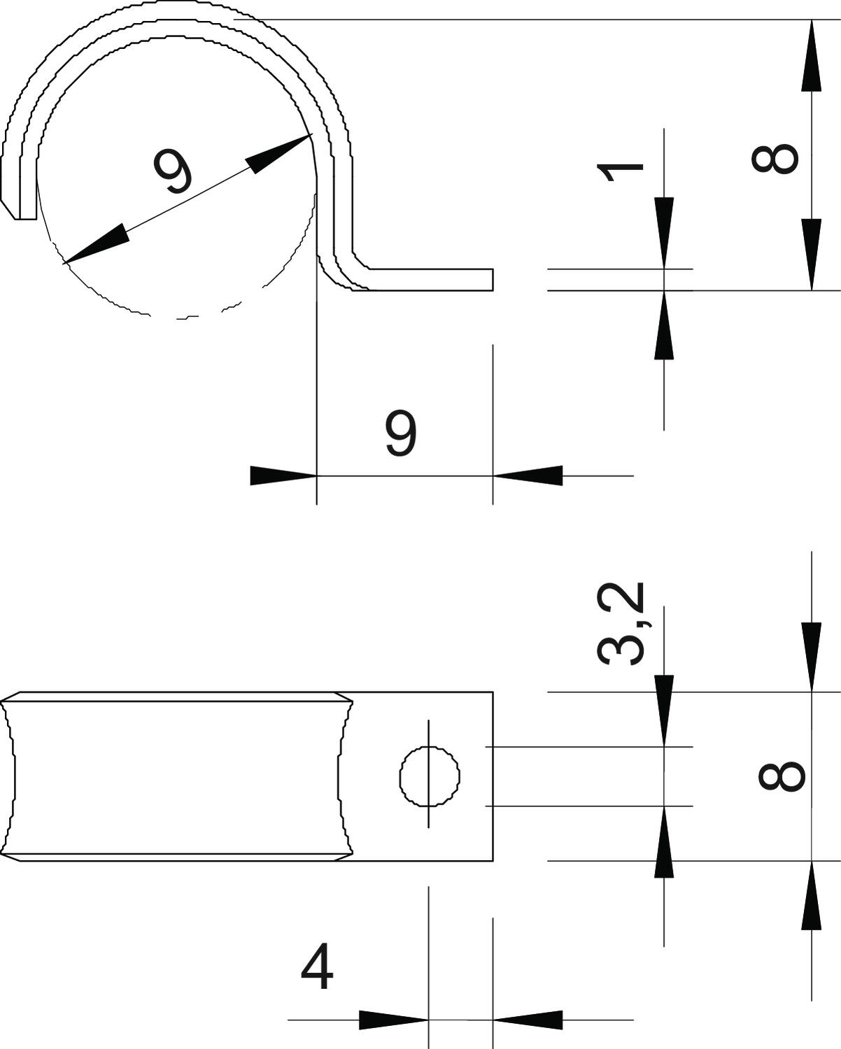 Avec gaine en matière plastique non Convient pour les espaces coupe-feu non Cote A 4 mm Cote b 8 mm Cote D 9 mm Cote d 3,2 mm Cote L 9 mm Cote t 1 mm Diamètre nominal 9 mm Dimension 9mm Dimension du trou 3,2 mm Dimension H 8 mm Distance au mur non Empreinte CO2 (GWP) du berceau à la porte 0,0045 kg CO2e / 1 Pièce Épaisseur du matériau 1,5 mm Hauteur 8 mm Largeur 8 mm Longueur 9 mm Matériau Acier Modèle à une patte Nombre de câbles/tubes 1 pour un diamètre de 9 Résistant aux UV oui Sans halogène oui Surface galvanisé, passivé transparent Type de fixation Trou de vis - Tous les types