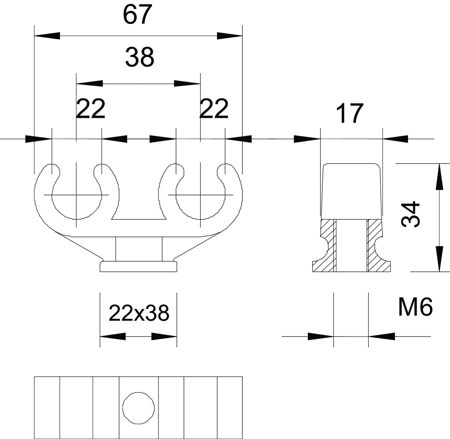 Avec gaine en matière plastique non Convient pour les espaces coupe-feu non Cote A 67 mm Cote B 17 mm Cote C 22 x 38 mm Cote L 38 mm Couleur gris clair; RAL 7035 Diamètre nominal 17,8 mm Dimension 18-22mm Dimension H 34 mm Empreinte CO2 (GWP) du berceau à la porte 0,0487 kg CO2e / 1 Pièce Matériau Polypropylène Modèle à deux pattes Nombre de câbles/tubes 2 Plage de serrage D max. 22 mm Plage de serrage D min. 18 mm Résistant aux UV non Sans halogène oui Taille 18/22 + 18/22 Type de fixation Raccord fileté - Tous les types
