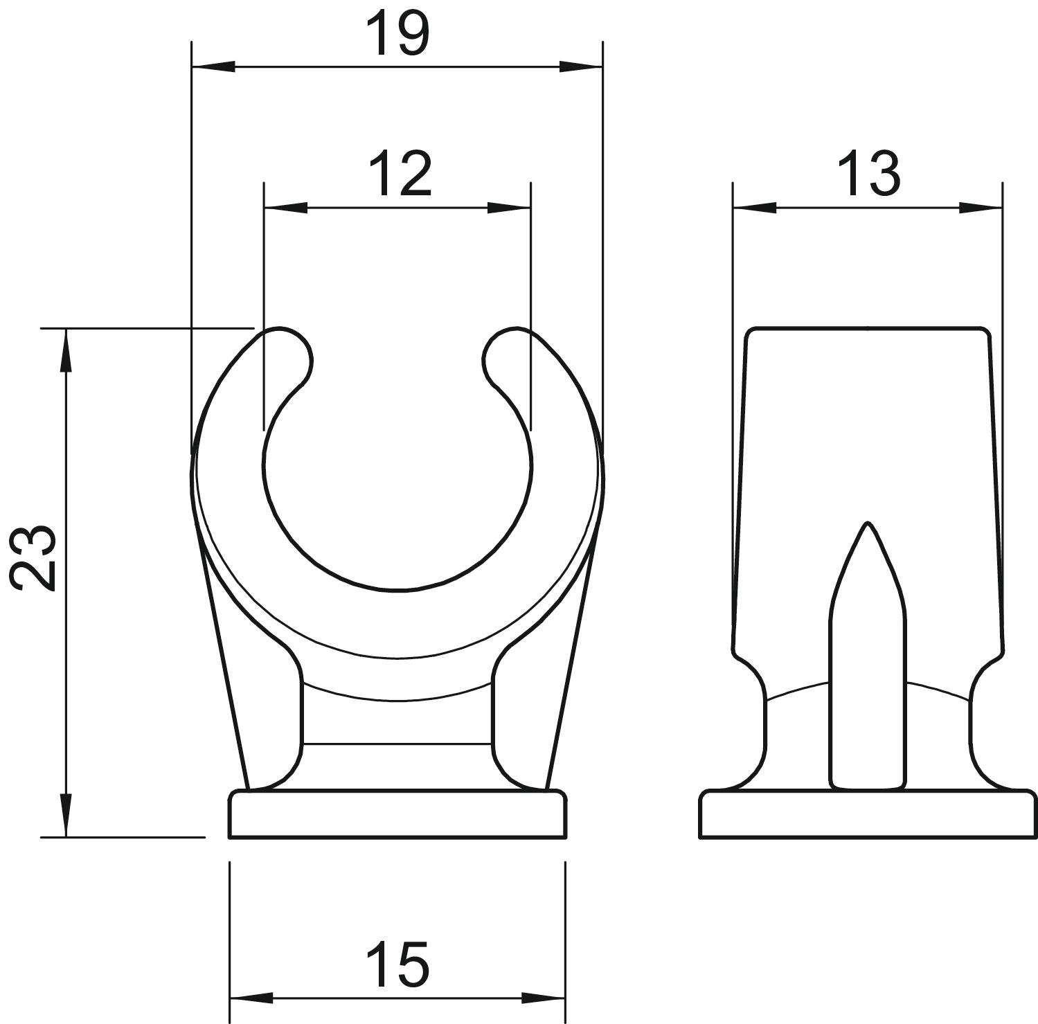 Avec gaine en matière plastique non Convient pour les espaces coupe-feu non Cote A 19 mm Cote B 13 mm Cote C 15 mm Couleur gris clair; RAL 7035 Diamètre nominal 11,2 mm Dimension 12mm Dimension H 23 mm Empreinte CO2 (GWP) du berceau à la porte 0,0094 kg CO2e / 1 Pièce Matériau Polypropylène Modèle à une patte Nombre de câbles/tubes 1 Plage de serrage D max. 12 mm Plage de serrage D min. 12 mm Résistant aux UV non Sans halogène oui Taille 12 Type de fixation Raccord fileté - Tous les types