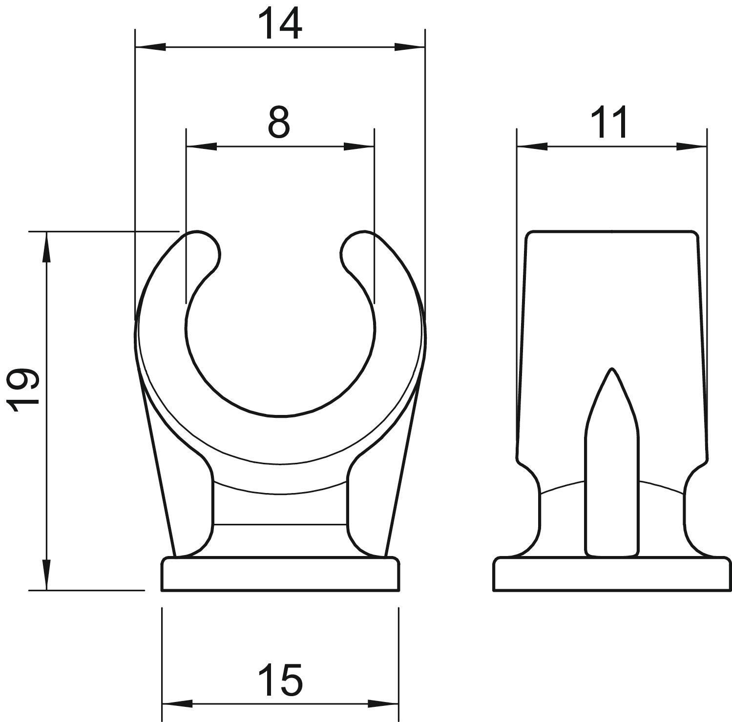 Avec gaine en matière plastique non Convient pour les espaces coupe-feu non Cote A 14 mm Cote B 11 mm Cote C 15 mm Couleur gris clair; RAL 7035 Diamètre nominal 7,6 mm Dimension 8mm Dimension H 19 mm Empreinte CO2 (GWP) du berceau à la porte 0,0045 kg CO2e / 1 Pièce Matériau Polypropylène Modèle à une patte Nombre de câbles/tubes 1 Plage de serrage D max. 8 mm Plage de serrage D min. 8 mm Résistant aux UV non Sans halogène oui Taille 8 Type de fixation Raccord fileté - Tous les types
