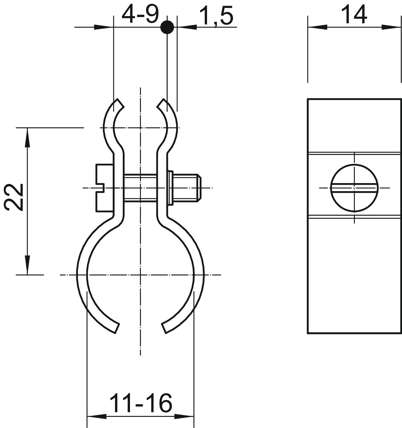 Cote A 22 mm Dimension 11-16mm Empreinte CO2 (GWP) du berceau à la porte 0,0337 kg CO2e / 1 Pièce Matériau Acier Modèle non isolé Nombre de câbles/tubes 1 Surface galvanisé Vis M4x14 - Tous les types