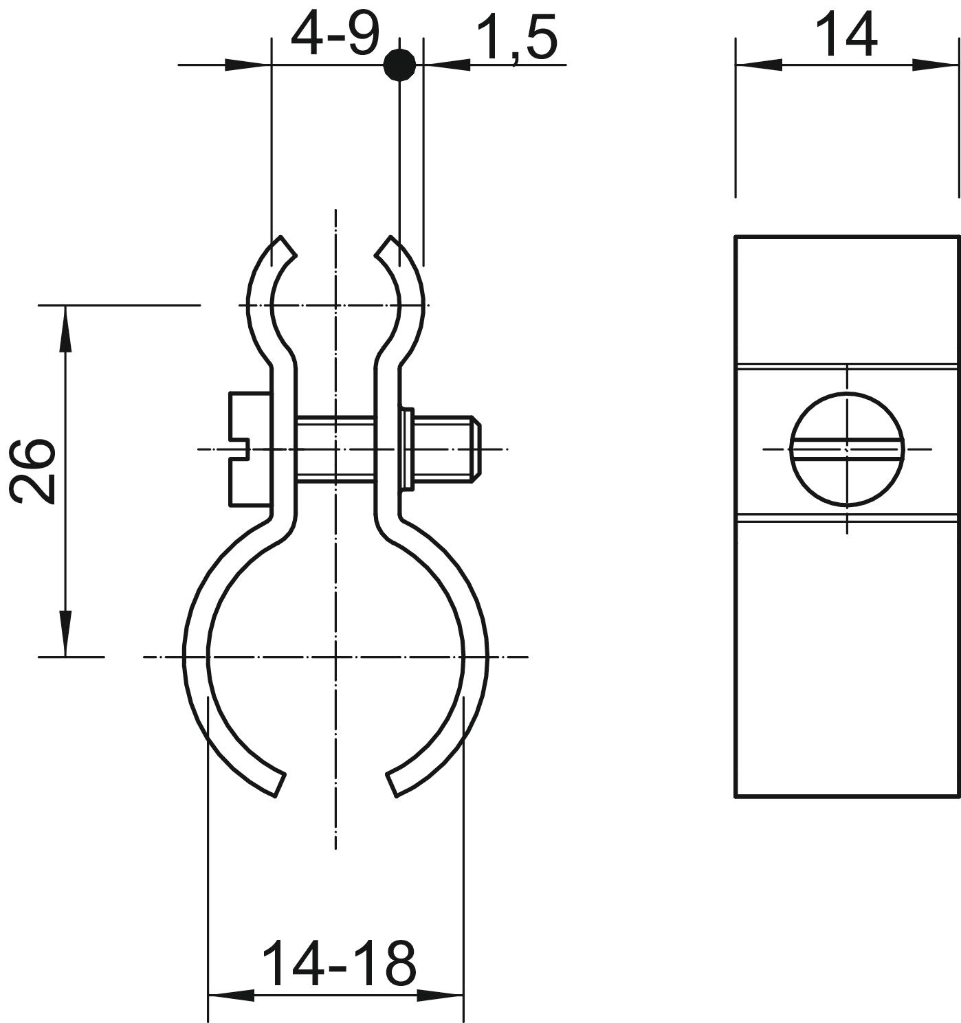 Cote A 26 mm Dimension 14-18mm Empreinte CO2 (GWP) du berceau à la porte 0,0408 kg CO2e / 1 Pièce Matériau Acier Modèle non isolé Nombre de câbles/tubes 1 Surface galvanisé Vis M4x14 - Tous les types