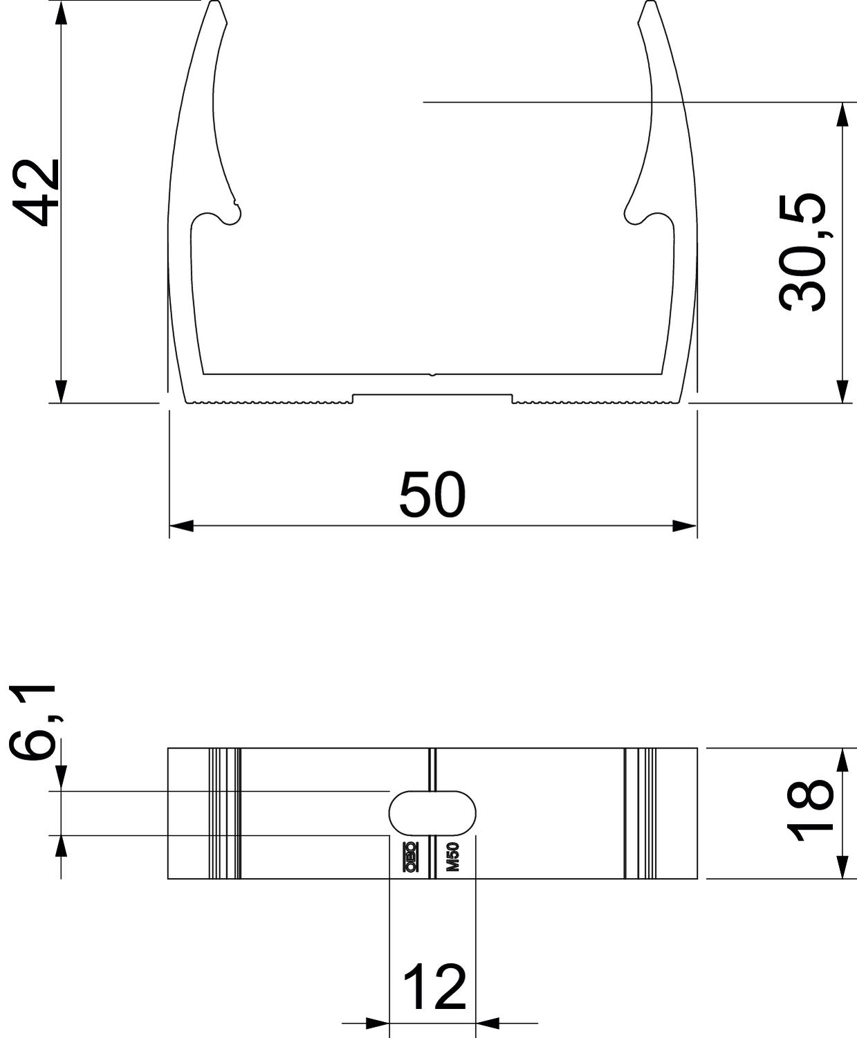 Trou longitudinal pour le placement latéral lors du montage à l'aide de vis à bois ou de chevilles à frapper.