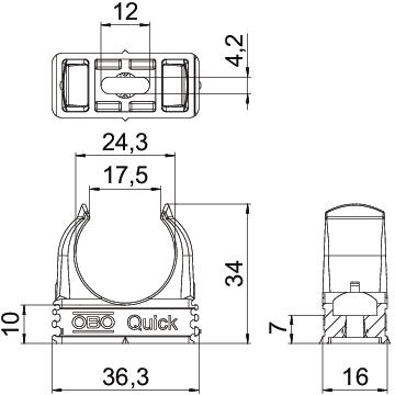 Description du produitCollier en saillie ignifuge pour la fixation de tubes blindés métriques, de tubes très isolés légers ou lourds et de tubes d'installations électriques Quick-Pipe. Possibilités de fixation universelles au mur et au plafond, en intérieur ou dans une zone extérieure protégée. Avec trou oblong pour le placement latéral lors du montage à l'aide de vis à bois ou de chevilles à frapper. Montage de tubes sans outils. Peuvent être reliés en série, également avec un collier OBO Multi-Quick ou starQuick. La taille M16-M32 peut être vissée sur le filetage M6. Écart de fixation 50-60 cm, pour les valeurs maximales de résistance à l'arrachement F à une température ambiante de 20 °C, se reporter au tableau.