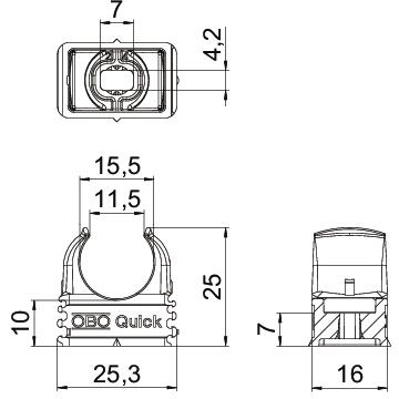 Description du produitCollier en saillie ignifuge pour la fixation de tubes blindés métriques, de tubes très isolés légers ou lourds et de tubes d'installations électriques Quick-Pipe. Possibilités de fixation universelles au mur et au plafond, en intérieur ou dans une zone extérieure protégée. Avec trou oblong pour le placement latéral lors du montage à l'aide de vis à bois ou de chevilles à frapper. Montage de tubes sans outils. Peuvent être reliés en série, également avec un collier OBO Multi-Quick ou starQuick. La taille M16-M32 peut être vissée sur le filetage M6. Écart de fixation 50-60 cm, pour les valeurs maximales de résistance à l'arrachement F à une température ambiante de 20 °C, se reporter au tableau.