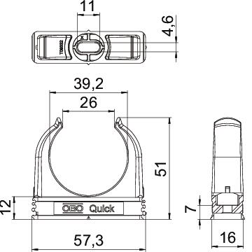 Description du produitCollier en saillie pour la fixation de tubes blindés métriques, de tubes très isolés légers et de tubes d'installation électrique Quick-Pipe. Possibilités de fixation universelles au mur et au plafond, en intérieur ou dans une zone extérieure protégée. Avec trou oblong pour le placement latéral lors du montage à l'aide de vis à bois ou de chevilles à frapper. Montage de tubes sans outils. Peuvent être reliés en série, également avec un collier OBO Multi-Quick ou starQuick. La taille M16-M32 peut être vissée sur le filetage M6. Écart de fixation 50-60 cm, pour les valeurs maximales de résistance à l'arrachement F à une température ambiante de 20 °C, se reporter au tableau.