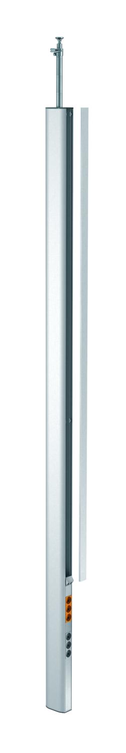 Le dispositif de serrage positionné en haut de la colonne de distribution ISS peut être déplacé de manière variable de 315 à 480 mm. Les couleurs disponibles sont aluminium brut anodisé ou blanc pur. La colonne est basée sur un profilé en aluminium ovale élancé. De l'autre côté sont situées deux ouvertures de système de 45 mm pour montage direct d'appareillages Modul 45®.