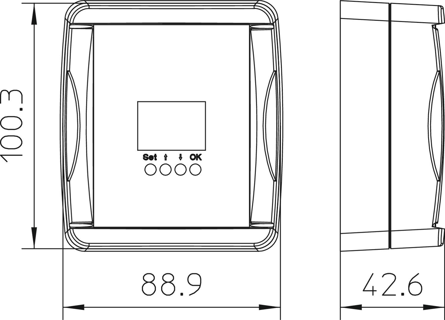Dimension 140x89x43 Dimensions 144x88x44 Indice de protection IP65 Matériau Plastique Nombre de capteurs 1 Plage de mesure max. 100 kA Plage de mesure min. 1 kA Plage de températures d’utilisation max. 60 °C Plage de températures d’utilisation min. -20 °C Signalisation sur l'appareil optique - Tous les types