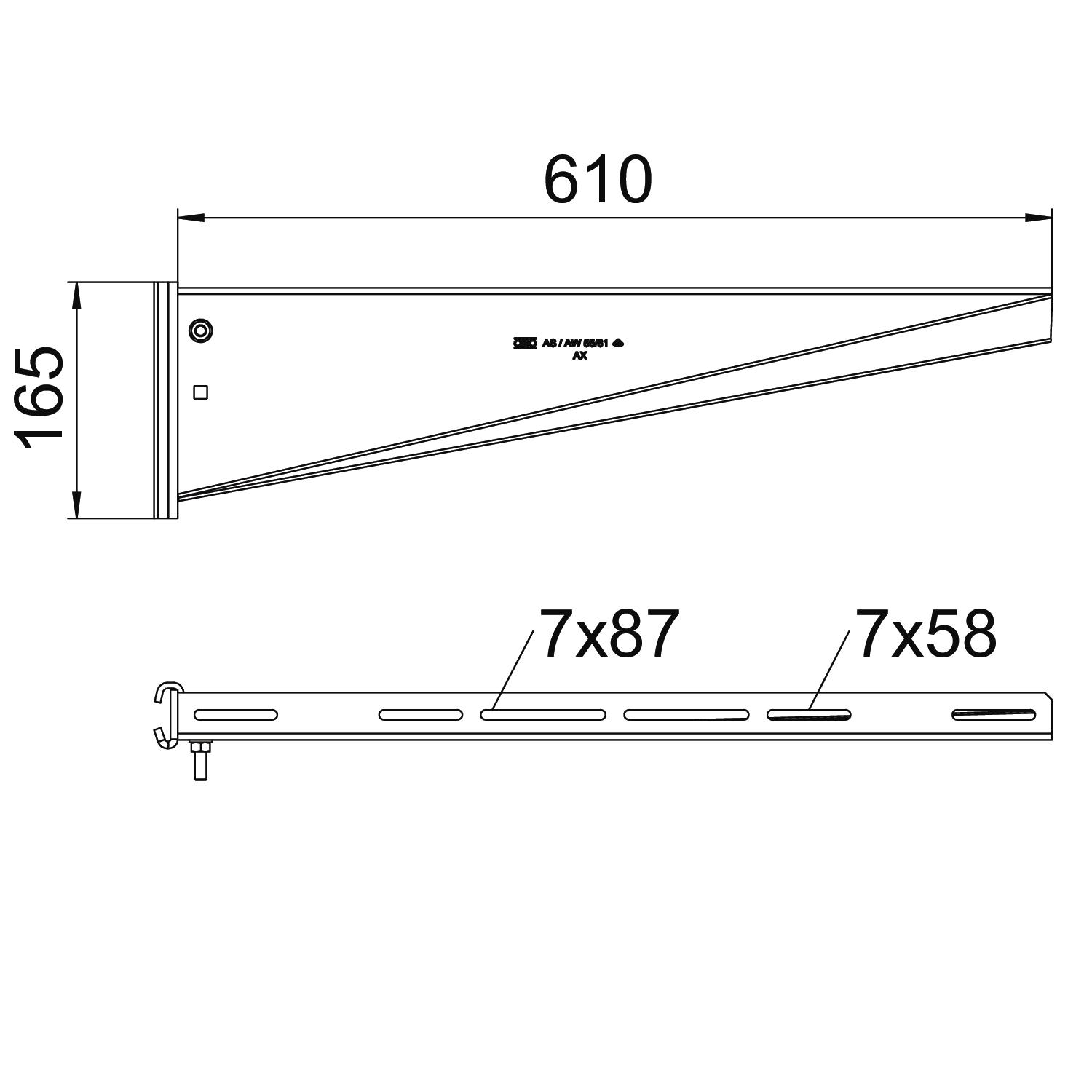 Acier inoxydable, teint non Cote B 610 mm Couleur zinc Dimension B610mm Dimension H 165 mm Empreinte CO2 (GWP) du berceau à la porte 6,5019 kg CO2e / 1 Pièce F en kN 5,5 kN Hauteur 165 mm Largeur 610 mm Longueur 41 mm Maintien en fonction non Matériau Acier Modèle Console de pendard Surface galvanisé à chaud par trempage Caractéristiques techniques