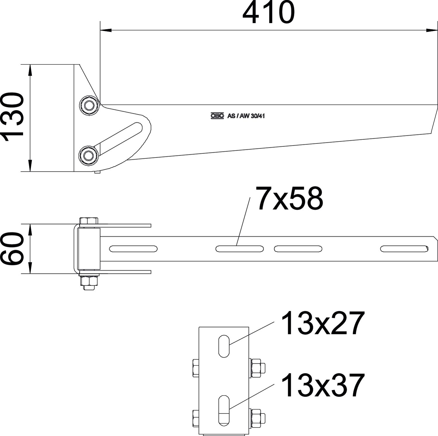 Acier inoxydable, teint non Cote A 60 mm Cote B 410 mm Couleur zinc Diamètre du trou 13 mm Dimension B410mm Dimension H 130 mm Empreinte CO2 (GWP) du berceau à la porte 4,7299 kg CO2e / 1 Pièce F en kN 0,9 kN Hauteur 130 mm Largeur 410 mm Longueur 60 mm Maintien en fonction non Matériau Acier Modèle Console murale pour largeur min. 60 pourr largeur max. 90 mm Surface galvanisé à chaud par trempage - Tous les types