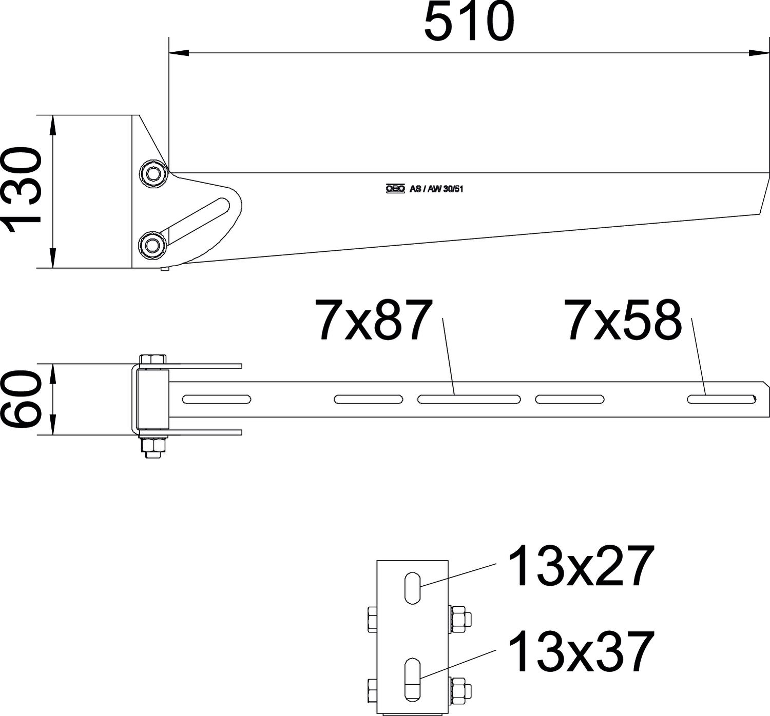 Acier inoxydable, teint non Cote A 60 mm Cote B 510 mm Couleur zinc Diamètre du trou 13 mm Dimension B510mm Dimension H 130 mm Empreinte CO2 (GWP) du berceau à la porte 5,8623 kg CO2e / 1 Pièce F en kN 0,9 kN Hauteur 130 mm Largeur 510 mm Longueur 60 mm Maintien en fonction non Matériau Acier Modèle Console murale pour largeur min. 60 pourr largeur max. 90 mm Surface galvanisé à chaud par trempage - Tous les types