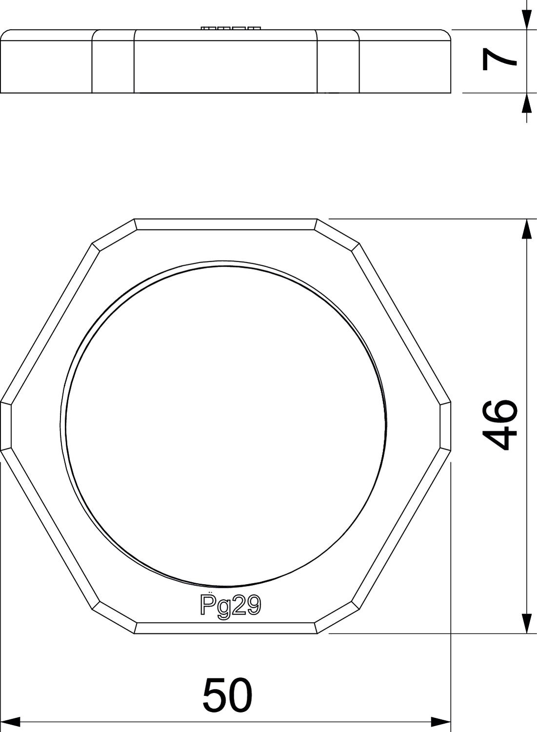 Anti-chocs non Cote L 7 mm Couleur gris clair; RAL 7035 Diamètre nominal du filetage métrique/PG 29 Dimension PG29 Dimension E 50 mm Empreinte CO2 (GWP) du berceau à la porte 0,0351 kg CO2e / 1 Pièce Filetage Pg 29 Matériau Polyamide Méplat 46 Renforcé par fibres de verre non Sans halogène oui Type de filetage PG - Tous les types