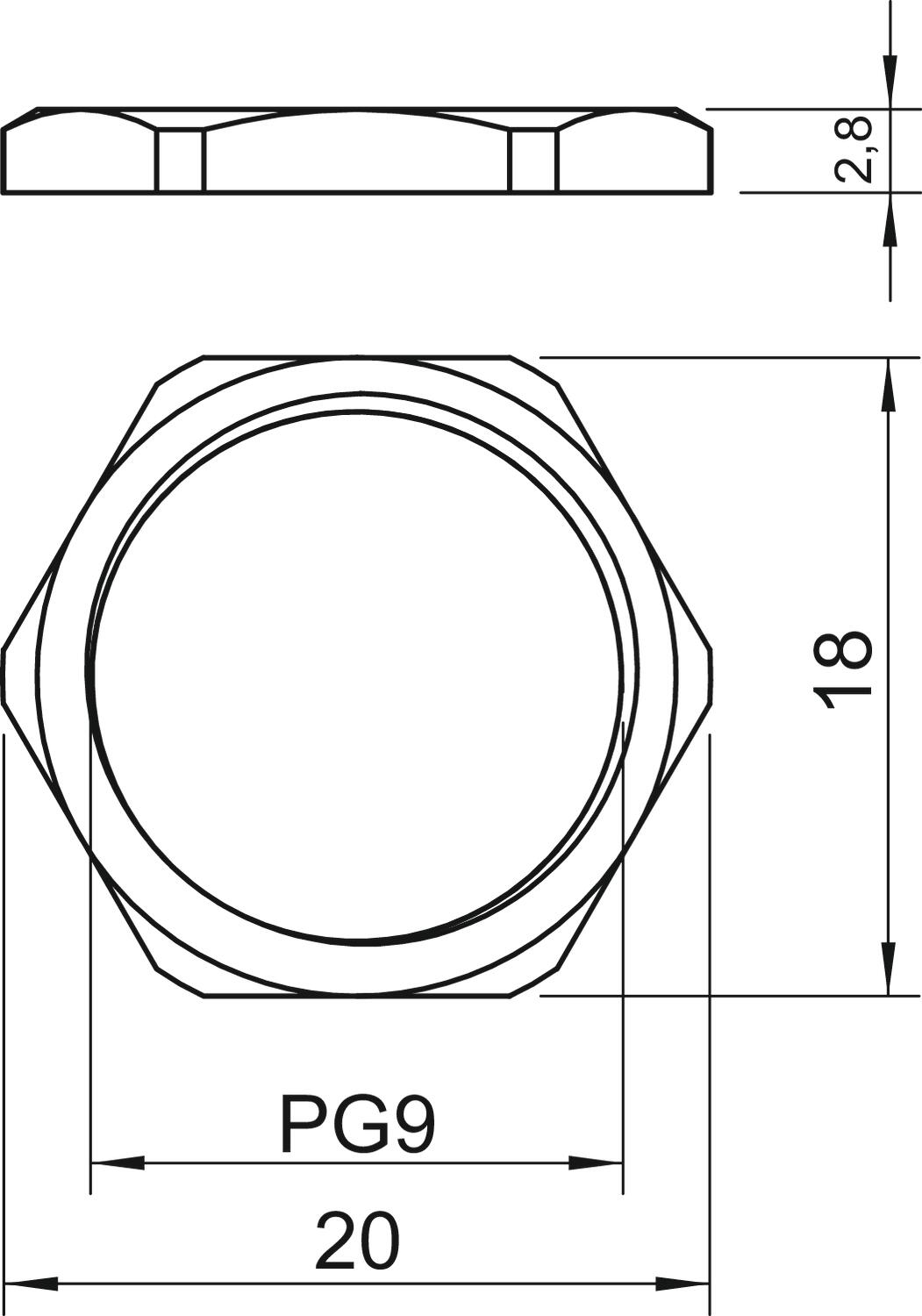Description du produitContre-écrou, pièce M selon la norme DIN 46320, avec filetage PG selon la norme DIN 40430.