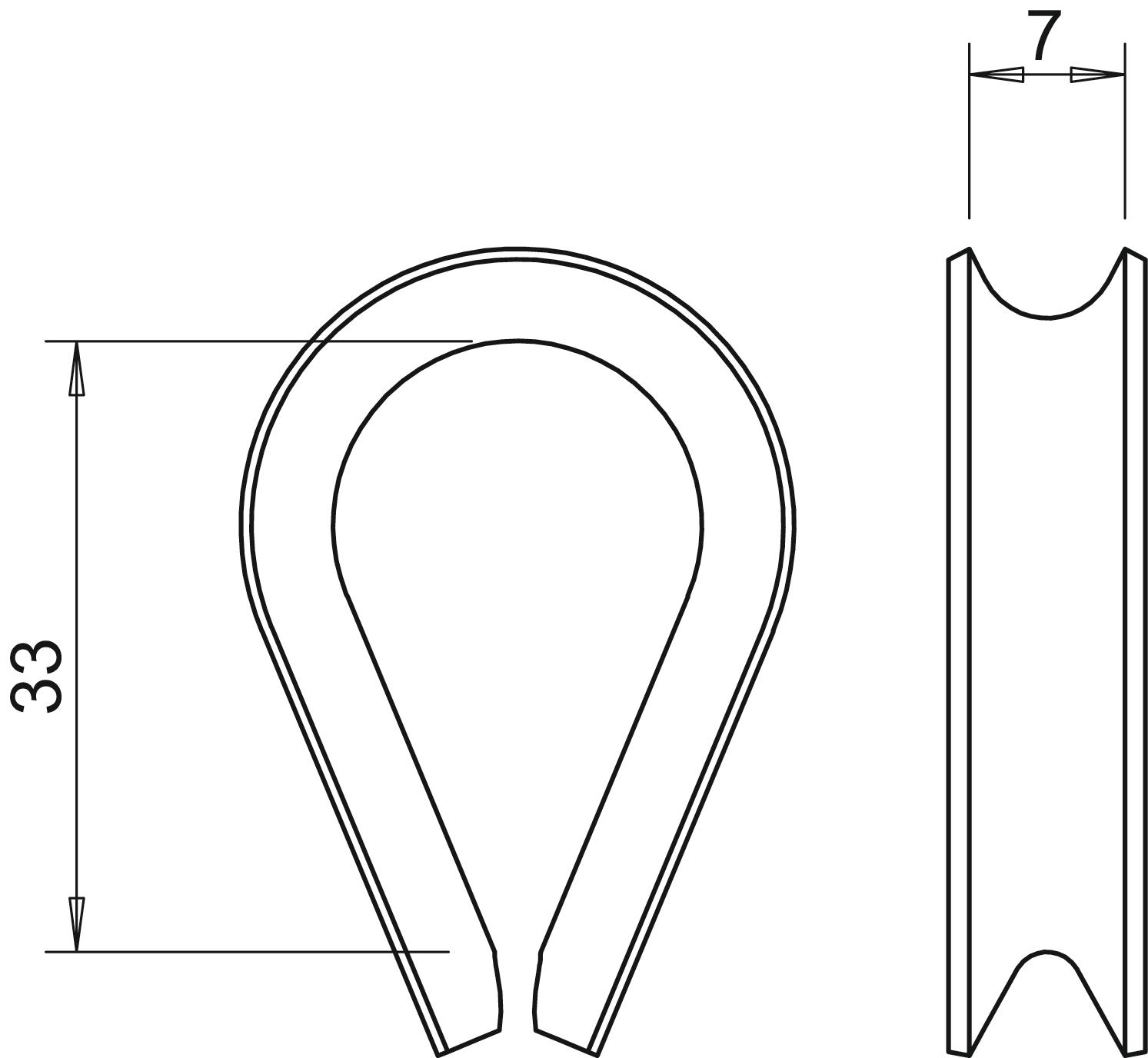 Cote A 33 mm Cote B 7 mm Dimension 6mm Empreinte CO2 (GWP) du berceau à la porte 0,0177 kg CO2e / 1 Pièce Matériau Acier pour diamètre de câbles min. 6 mm Surface galvanisé - Tous les types