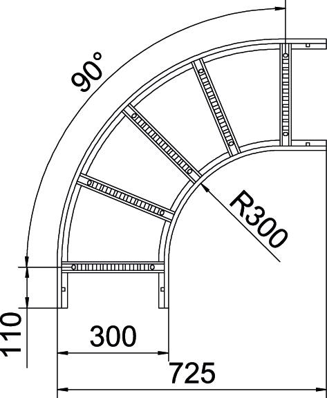 Description du produitCoude à 90° horizontal avec échelon soudée pour tous les types d'échelles à câbles d'une hauteur latérale de 110 mm.
