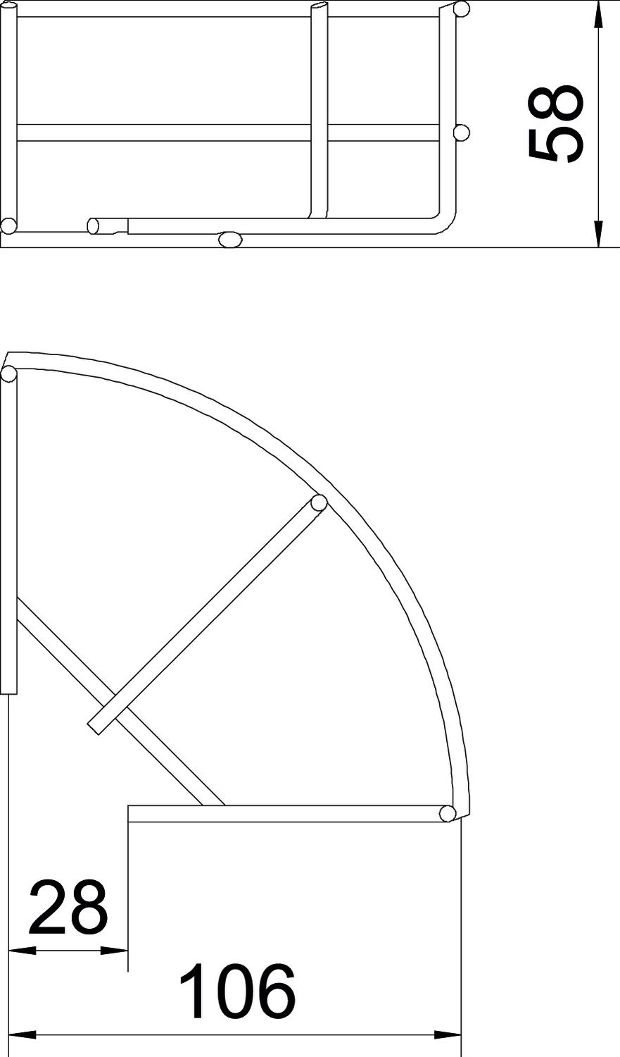 Description du produitCoude à 90°, horizontal, pour chemins de câbles en treillis d'une hauteur d'aile de 55 mm.